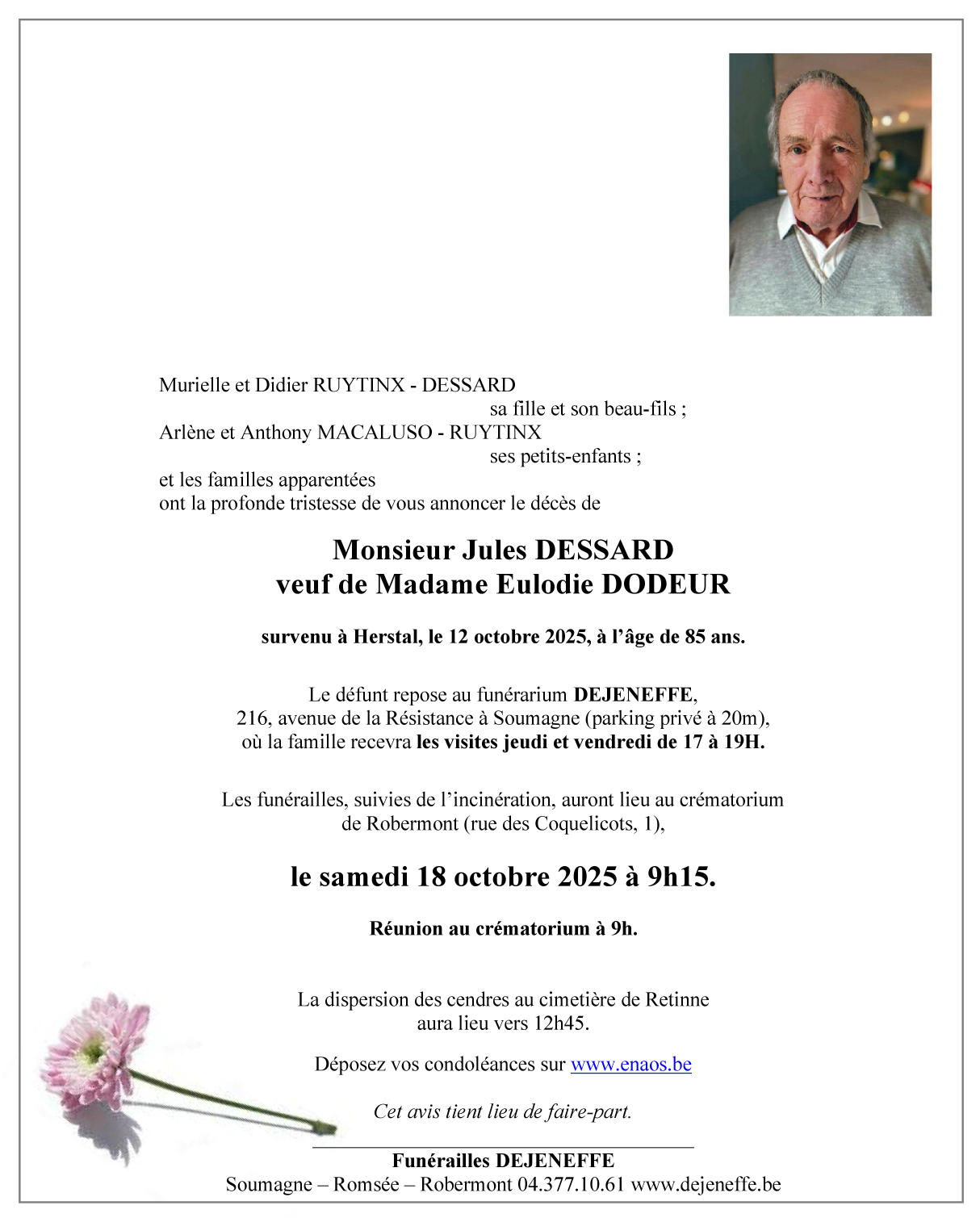 Décédé à Herstal (4040, Belgique) le dimanche 12 octobre 2025 à l'âge de 85 ans