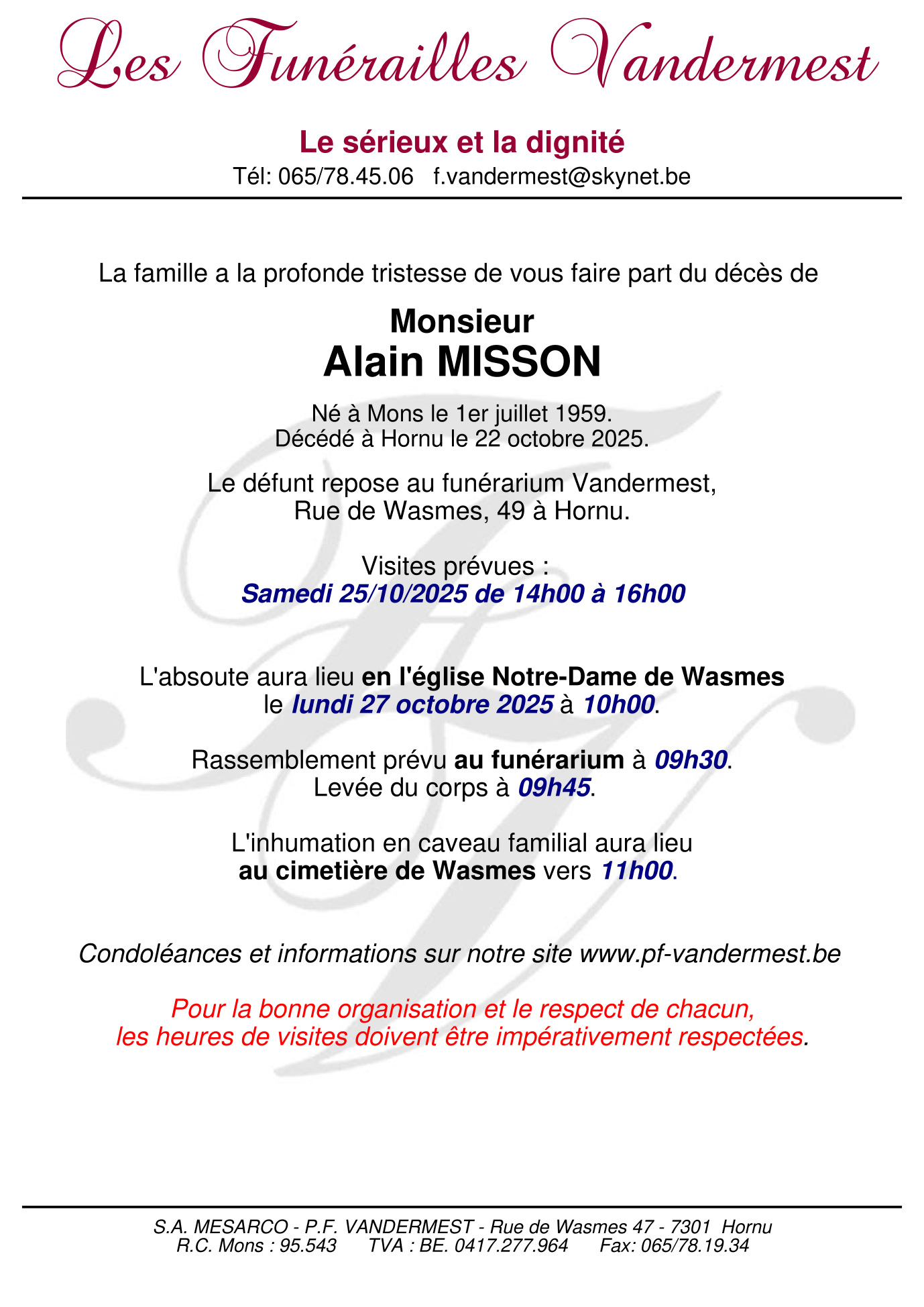 Décédé à Hornu (7301, Belgique) le mercredi 22 octobre 2025 à l'âge de 66 ans