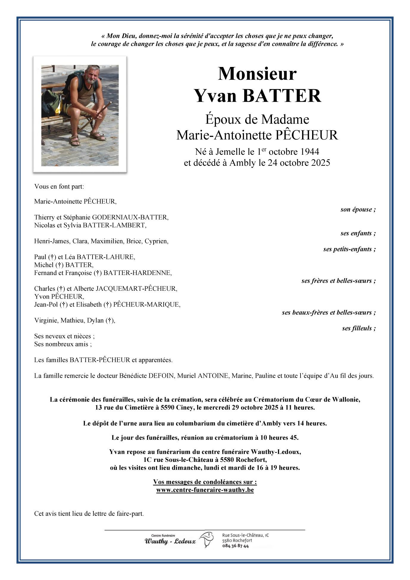 Fallecido en Ambly (6953, Bélgica) el viernes, 24 de octubre de 2025 a la edad de 81 años