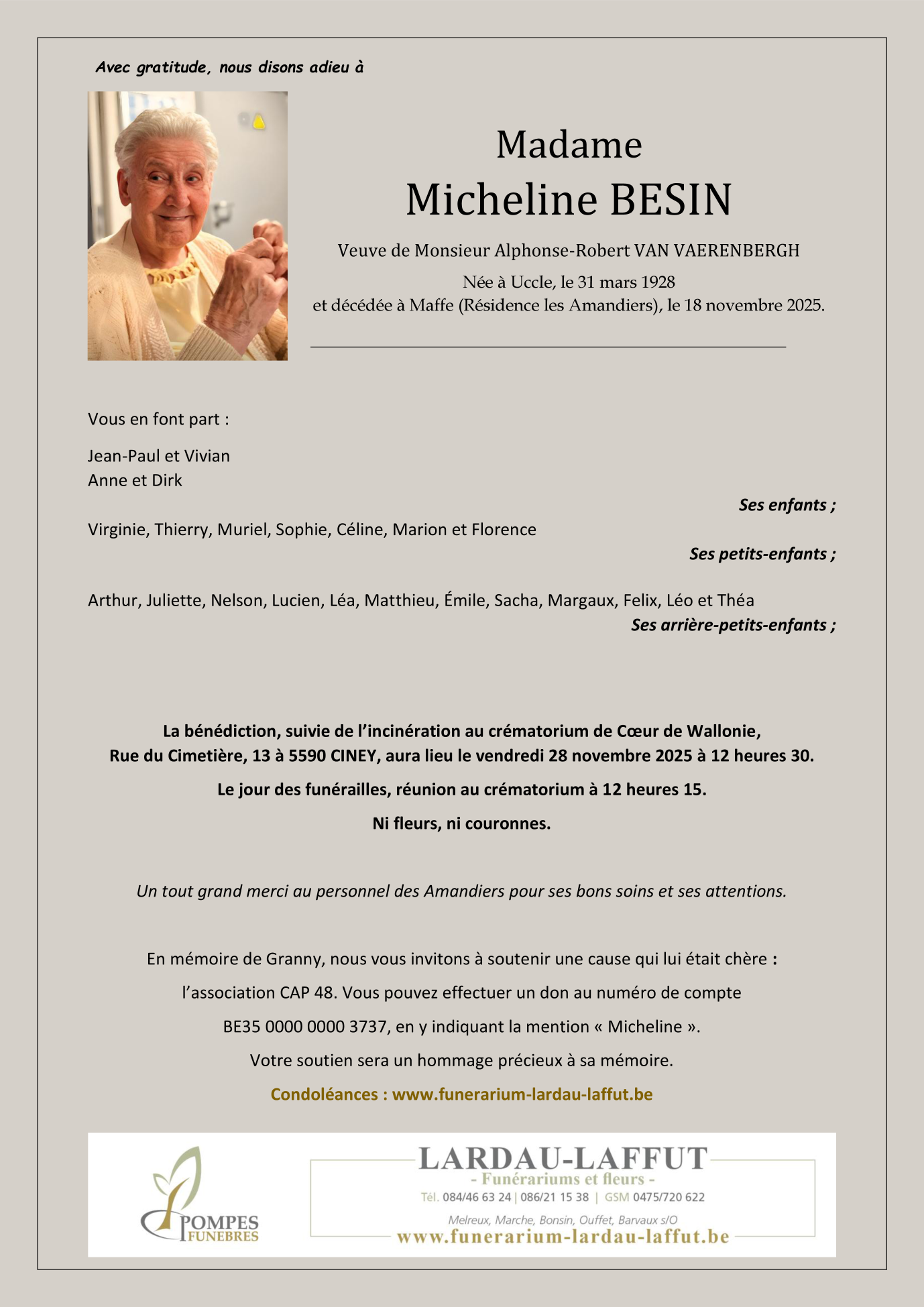Died in Maffe (5374, Belgium) on 18 November 2025 at the age of 97 years