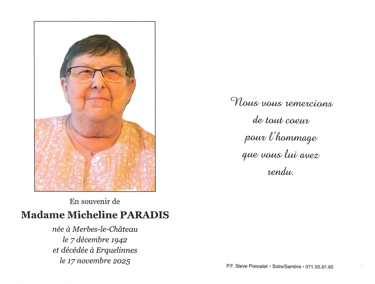 Fallecida en Erquelinnes (6560, Bélgica) el lunes, 17 de noviembre de 2025 a la edad de 82 años