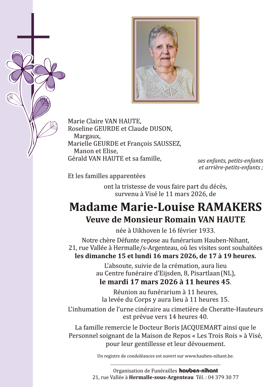 Died in Visé (4600, Belgium) on 11 March 2026 at the age of 93 years