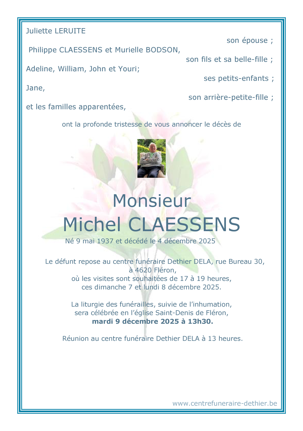 Décédé à Chênée (4032, Belgique) le jeudi 4 décembre 2025 à l'âge de 88 ans
