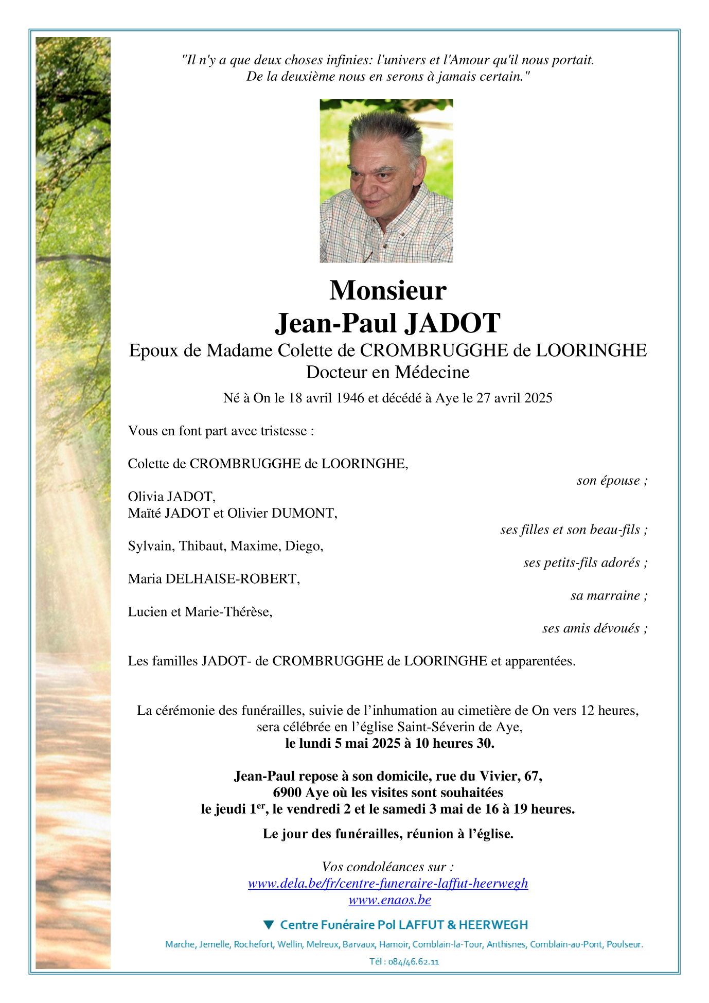 Overleden te Aye (6900, België) op zondag 27 april 2025 op 79-jarige leeftijd