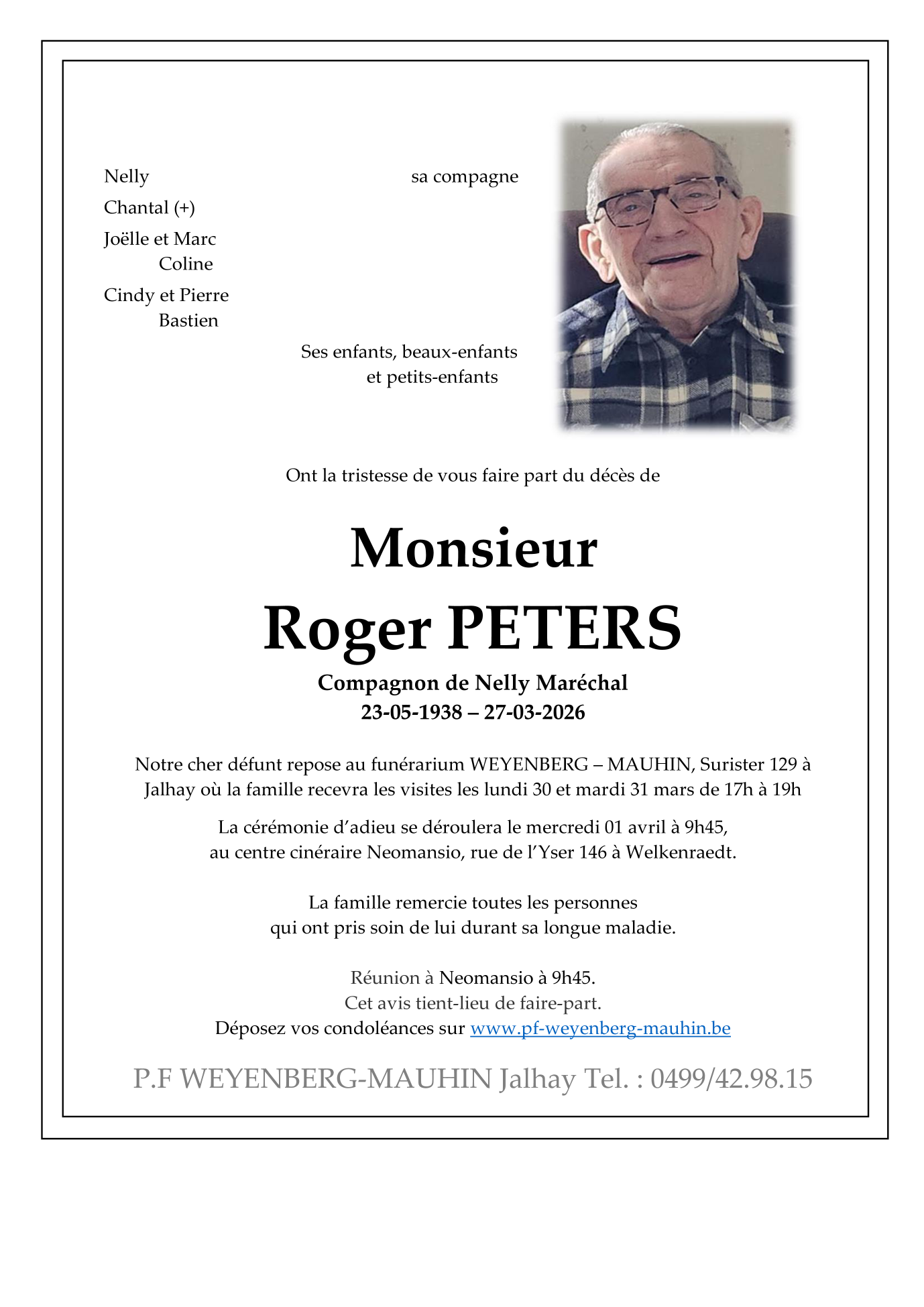Décédé à Verviers (4800, Belgique) le vendredi 27 mars 2026 à l'âge de 87 ans