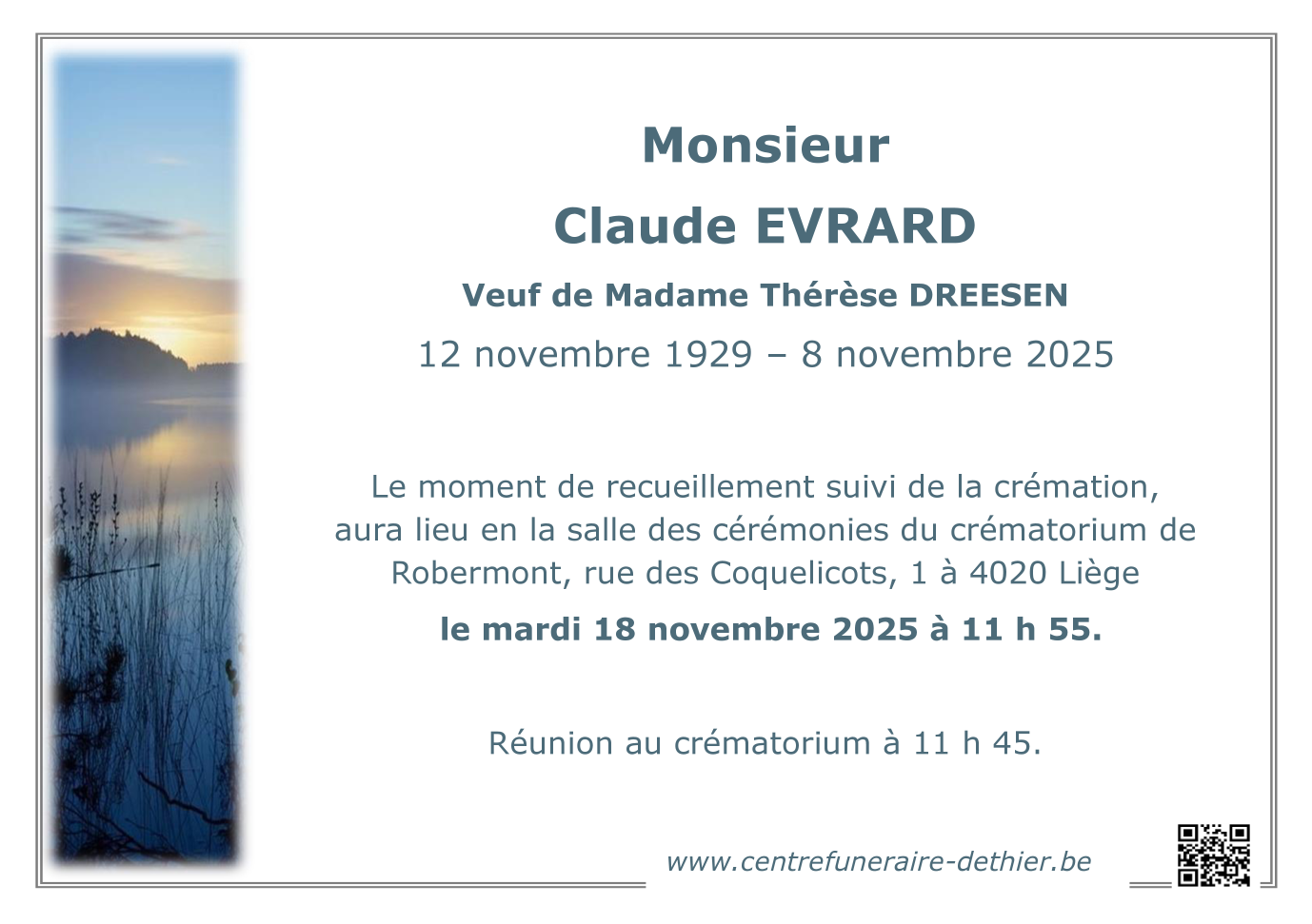 Décédé à Liège (4020, Belgique) le samedi 8 novembre 2025 à l'âge de 95 ans