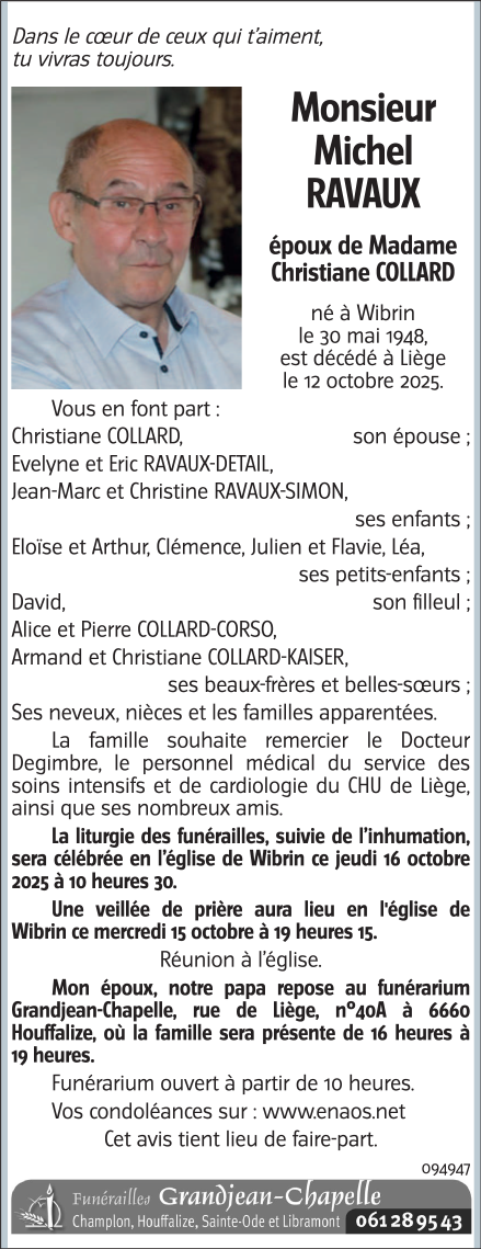 Died in Liège (4000, Belgium) on 12 October 2025 at the age of 77 years