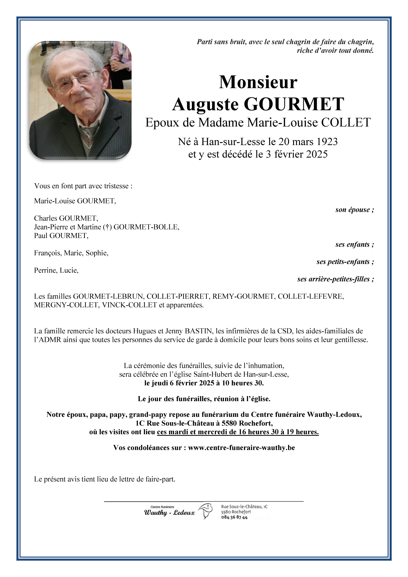 Fallecido en Han-sur-Lesse (5580, Bélgica) el lunes, 3 de febrero de 2025 a la edad de 101 años