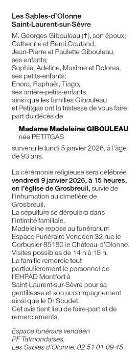 Madame Madeleine GIBOULEAU née PETITGAS