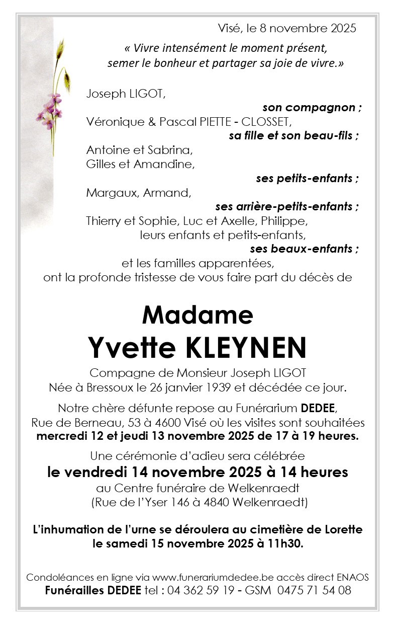 Fallecida en Herstal (4040, Bélgica) el sábado, 8 de noviembre de 2025 a la edad de 86 años