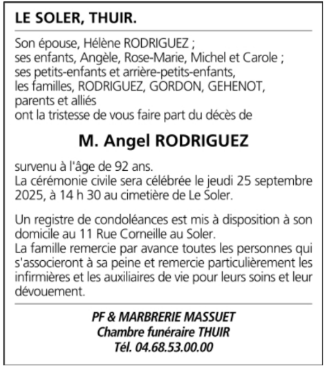 Fallecido en Le Soler (66270, Francia) el martes, 23 de septiembre de 2025 a la edad de 92 años