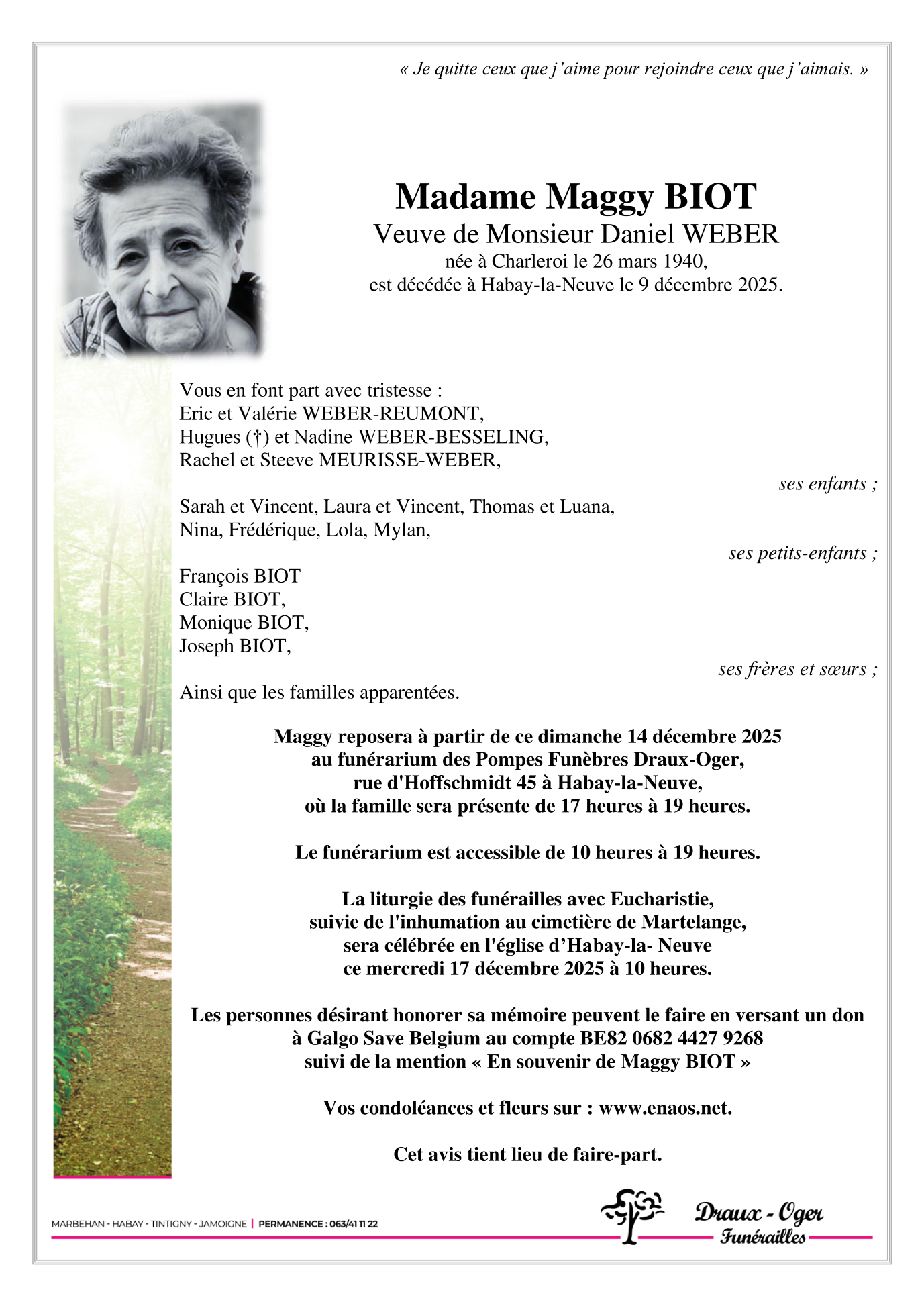 Fallecida en Habay-la-Neuve (6720, Bélgica) el martes, 9 de diciembre de 2025 a la edad de 85 años