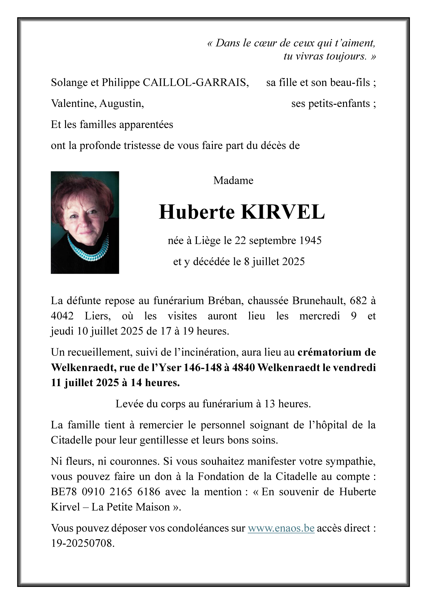 Overleden te Liège (4000, België) op dinsdag 8 juli 2025 op 79-jarige leeftijd