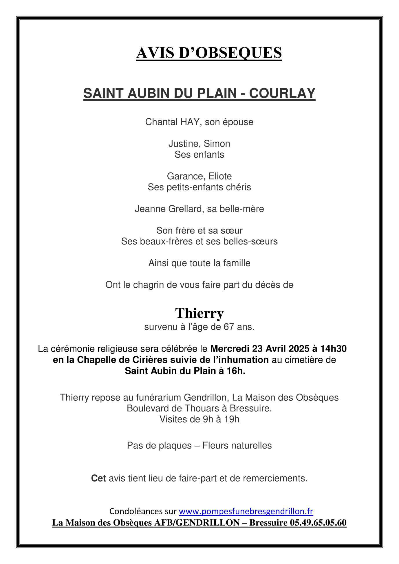 Décédé à Niort (79000, France) le samedi 19 avril 2025 à l'âge de 67 ans