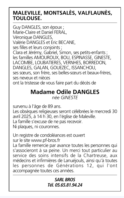 Madame Odile DANGLES née GINESTE