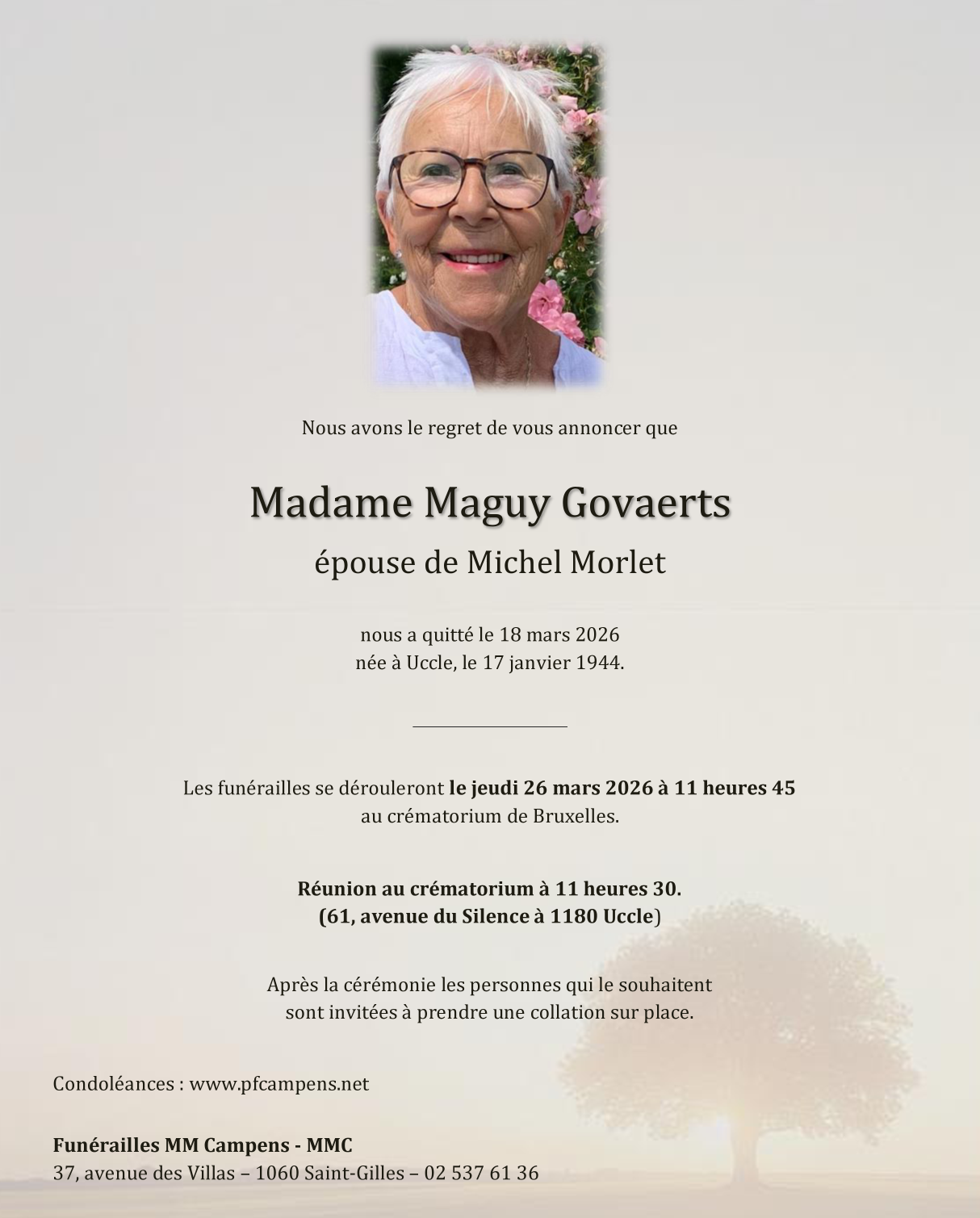 Overleden te Bruxelles (1000, België) op woensdag 18 maart 2026 op 82-jarige leeftijd