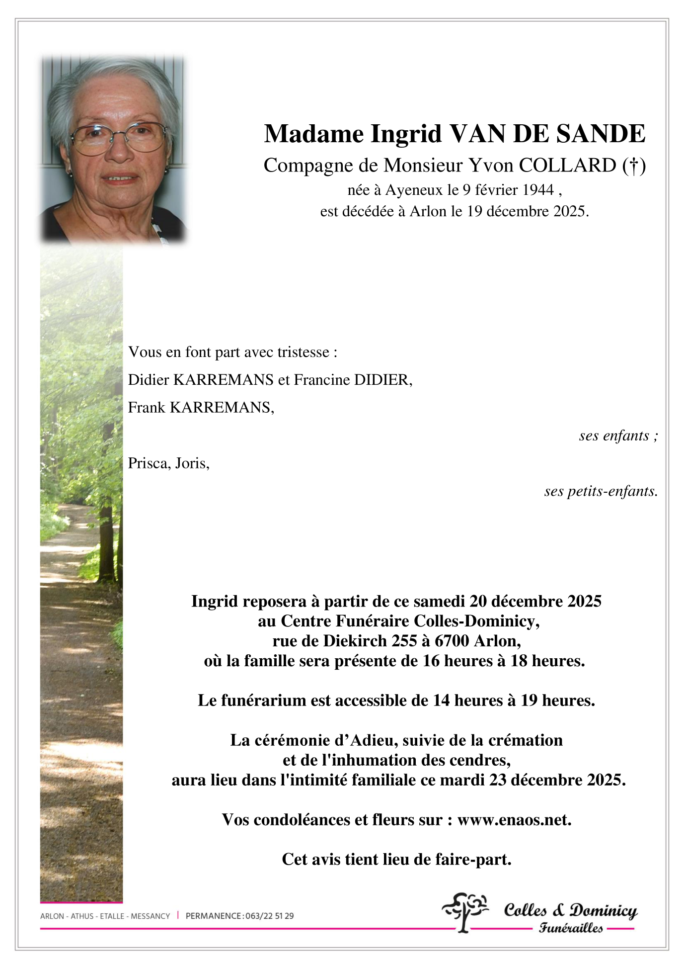 Fallecida en Arlon (6700, Bélgica) el viernes, 19 de diciembre de 2025 a la edad de 81 años