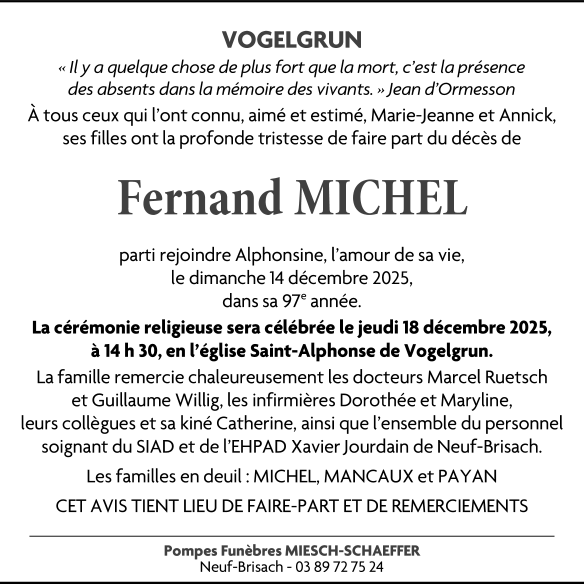 Décédé à Neuf-Brisach (68600, France) le dimanche 14 décembre 2025 à l'âge de 96 ans