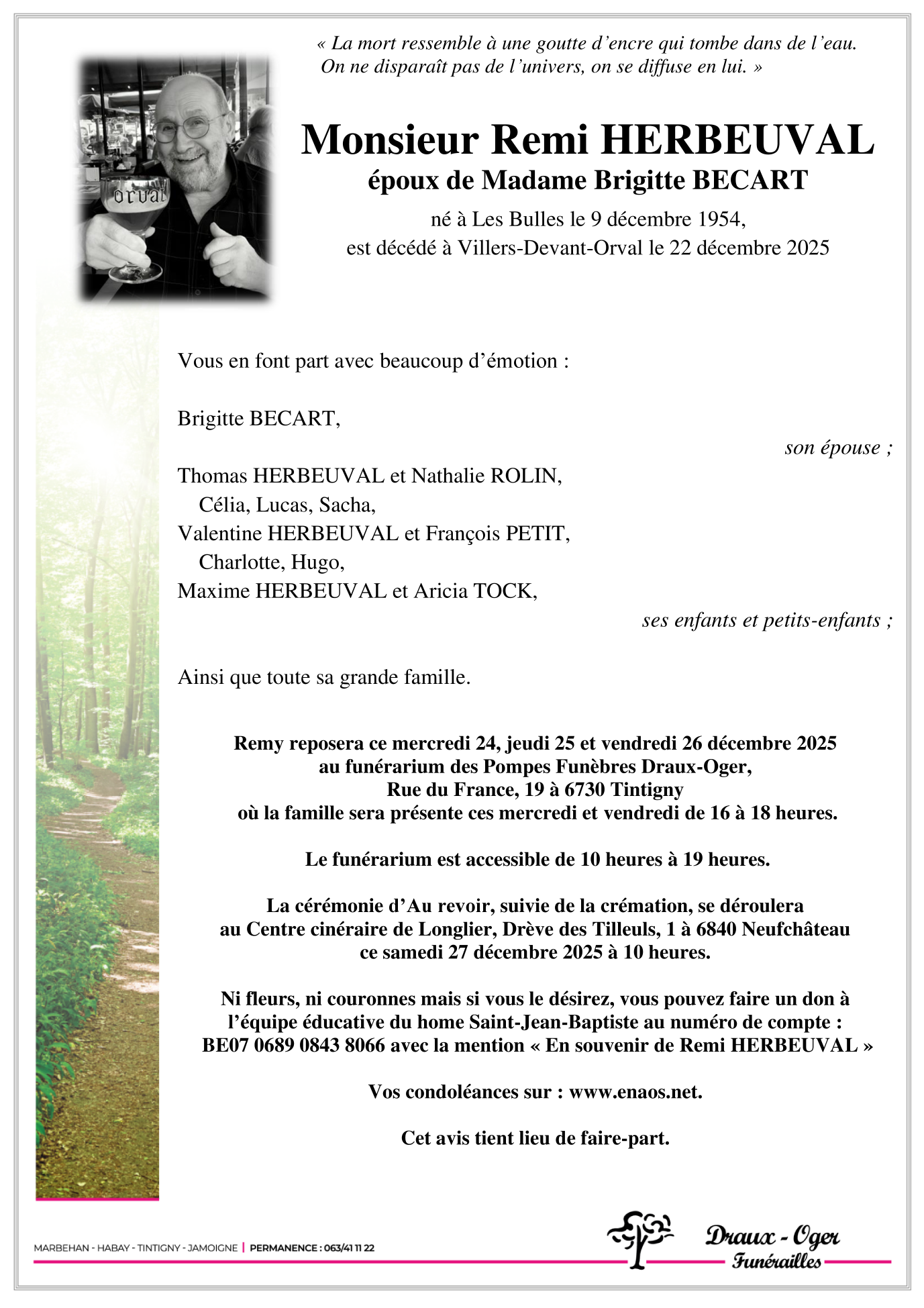 Fallecido en Villers-Devant-Orval (6823, Bélgica) el lunes, 22 de diciembre de 2025 a la edad de 71 años