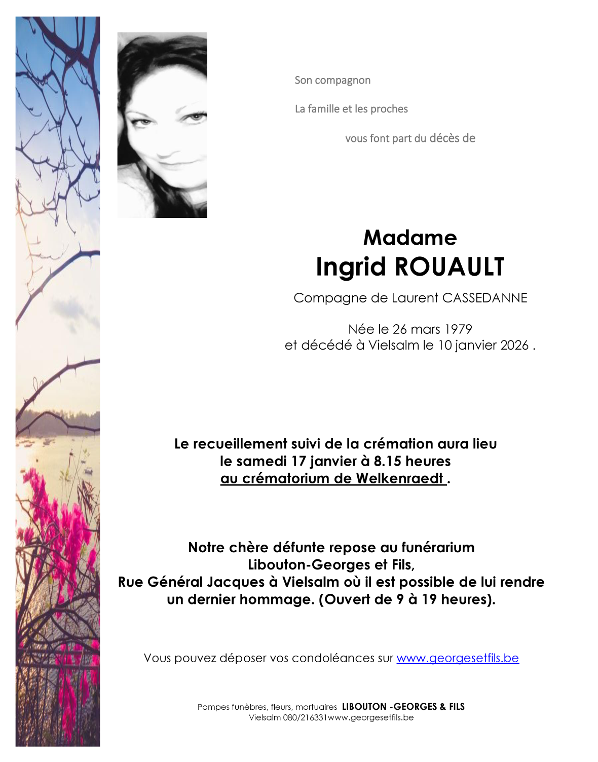 Décédée à Vielsalm (6690, Belgique) le samedi 10 janvier 2026 à l'âge de 46 ans