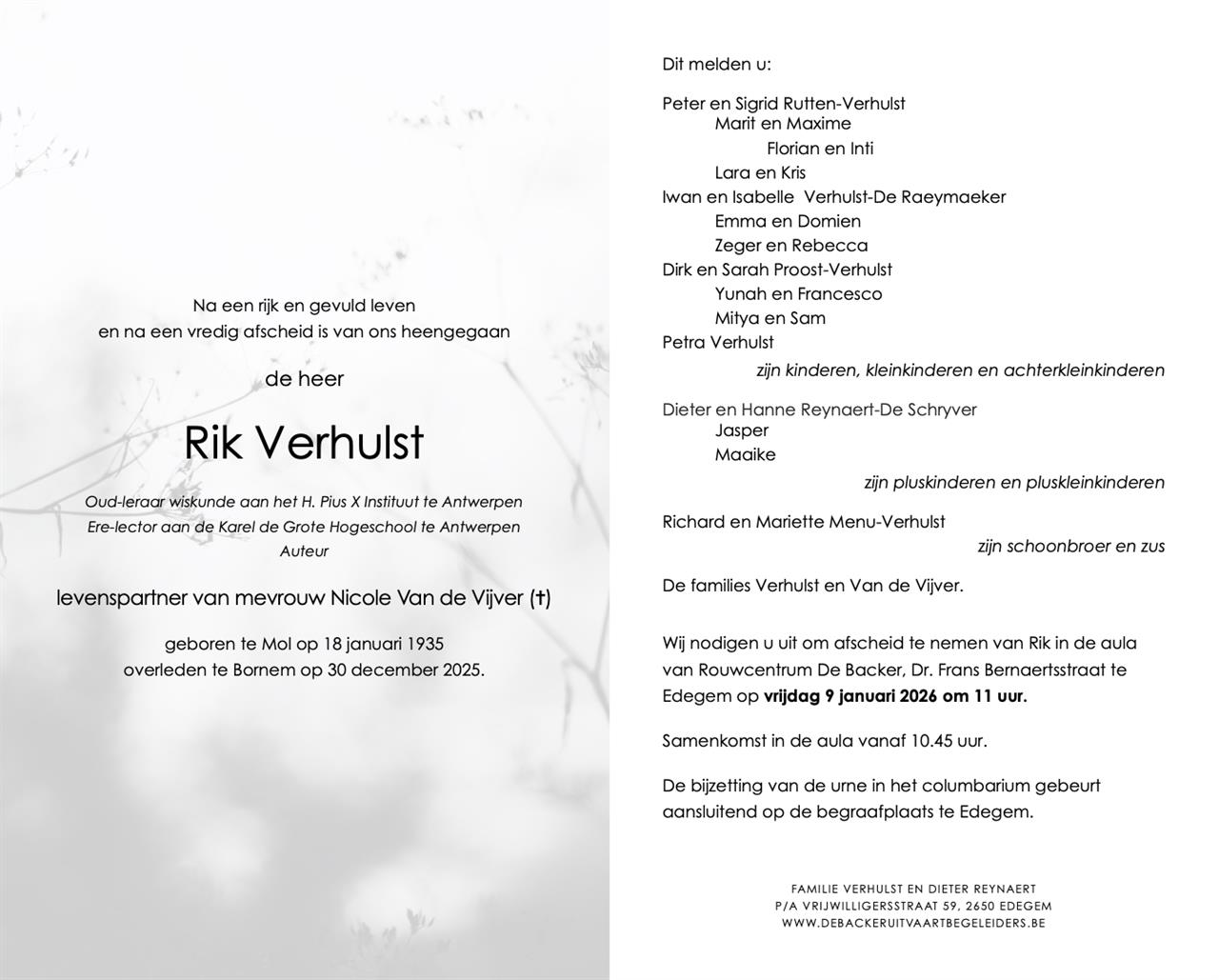Décédé à Bornem (2880, Belgique) le mardi 30 décembre 2025 à l'âge de 90 ans