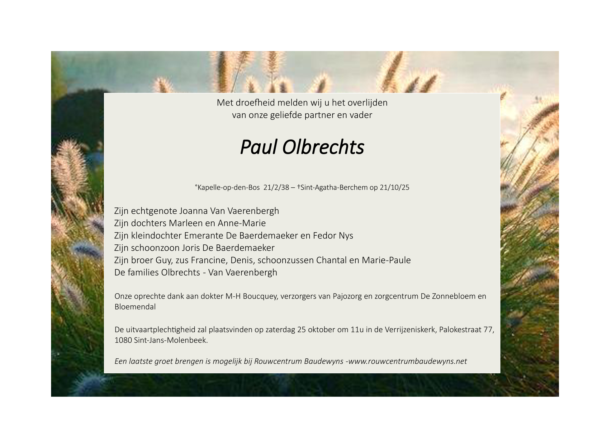 Décédé à Sint-Agatha-Berchem (1082, Belgique) le mardi 21 octobre 2025 à l'âge de 87 ans