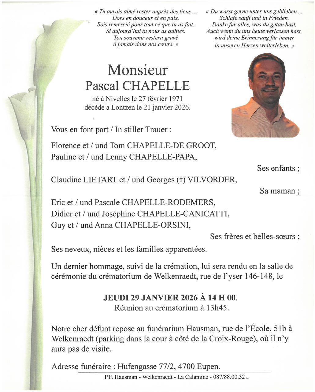 Fallecido en Herbesthal (4710, Bélgica) el miércoles, 21 de enero de 2026 a la edad de 54 años