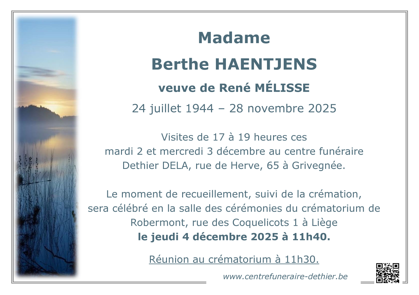 Décédée à Liège (4000, Belgique) le vendredi 28 novembre 2025 à l'âge de 81 ans