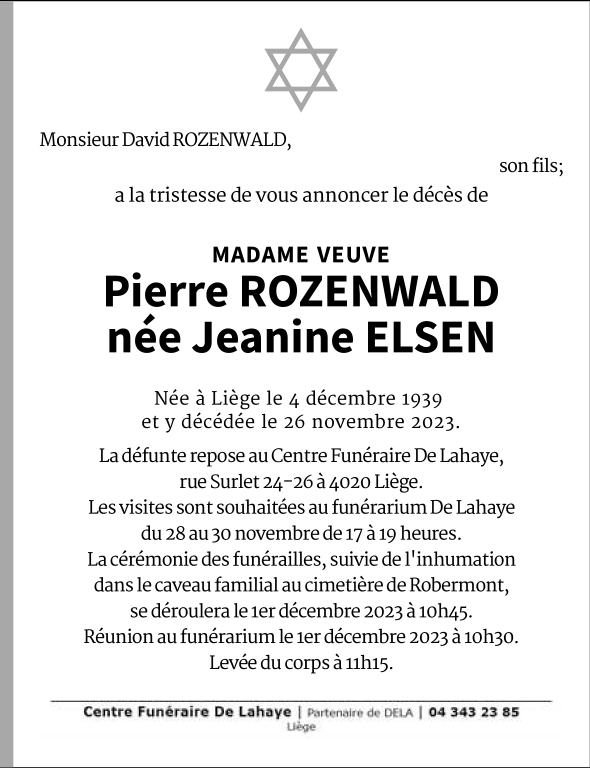 Madame Veuve Pierre ROZENWALD née Jeanine ELSEN