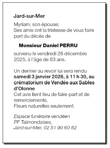 Overleden te Les Sables d'Olonne (85100, Frankrijk) op vrijdag 26 december 2025 op 83-jarige leeftijd