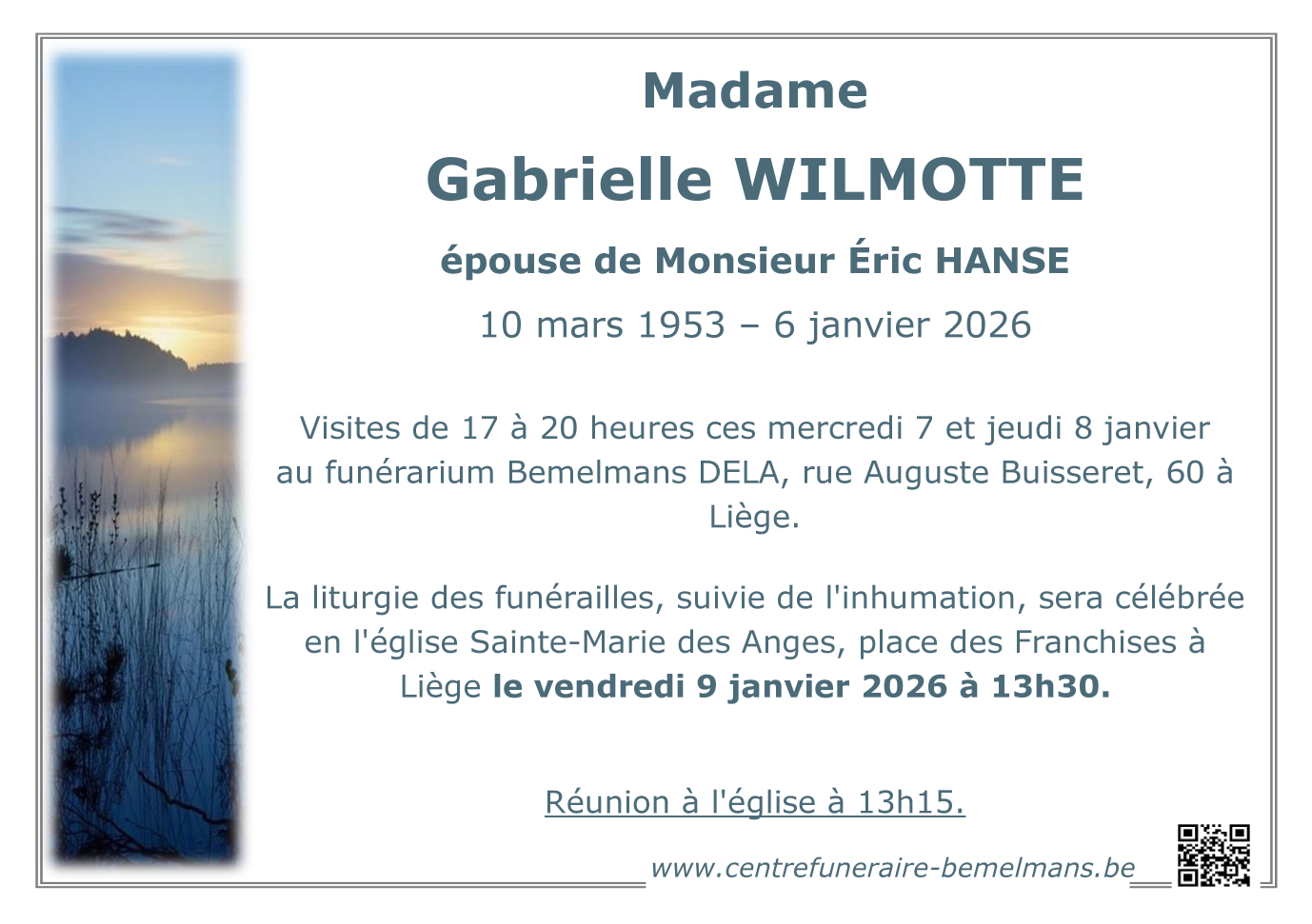 Died in Liège (4000, Belgium) on 06 January 2026 at the age of 72 years
