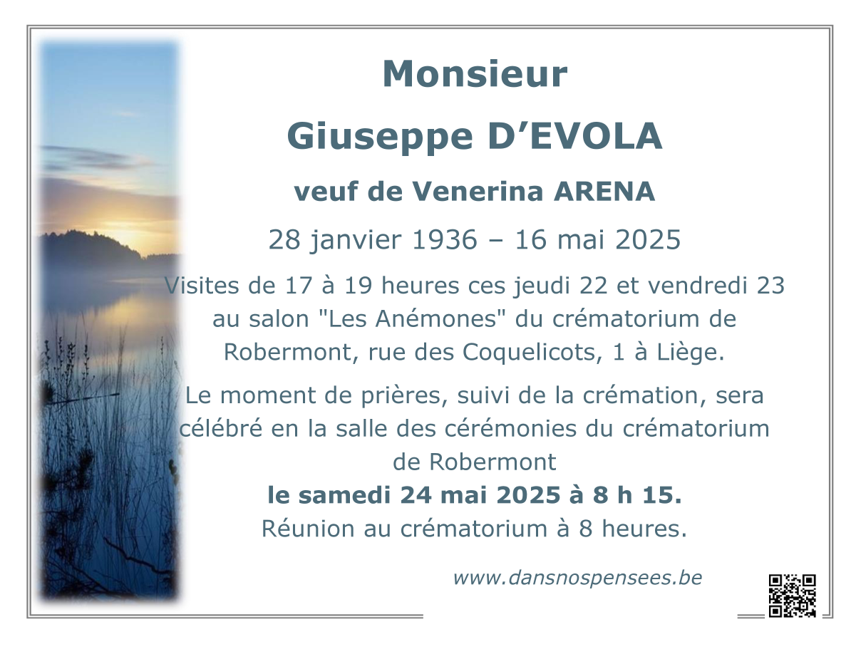 Décédé à Grivegnée (4030, Belgique) le vendredi 16 mai 2025 à l'âge de 89 ans