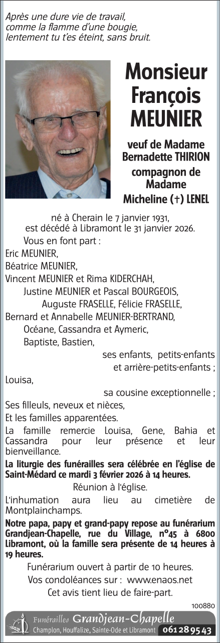 Décédé à Libramont (6800, Belgique) le samedi 31 janvier 2026 à l'âge de 95 ans