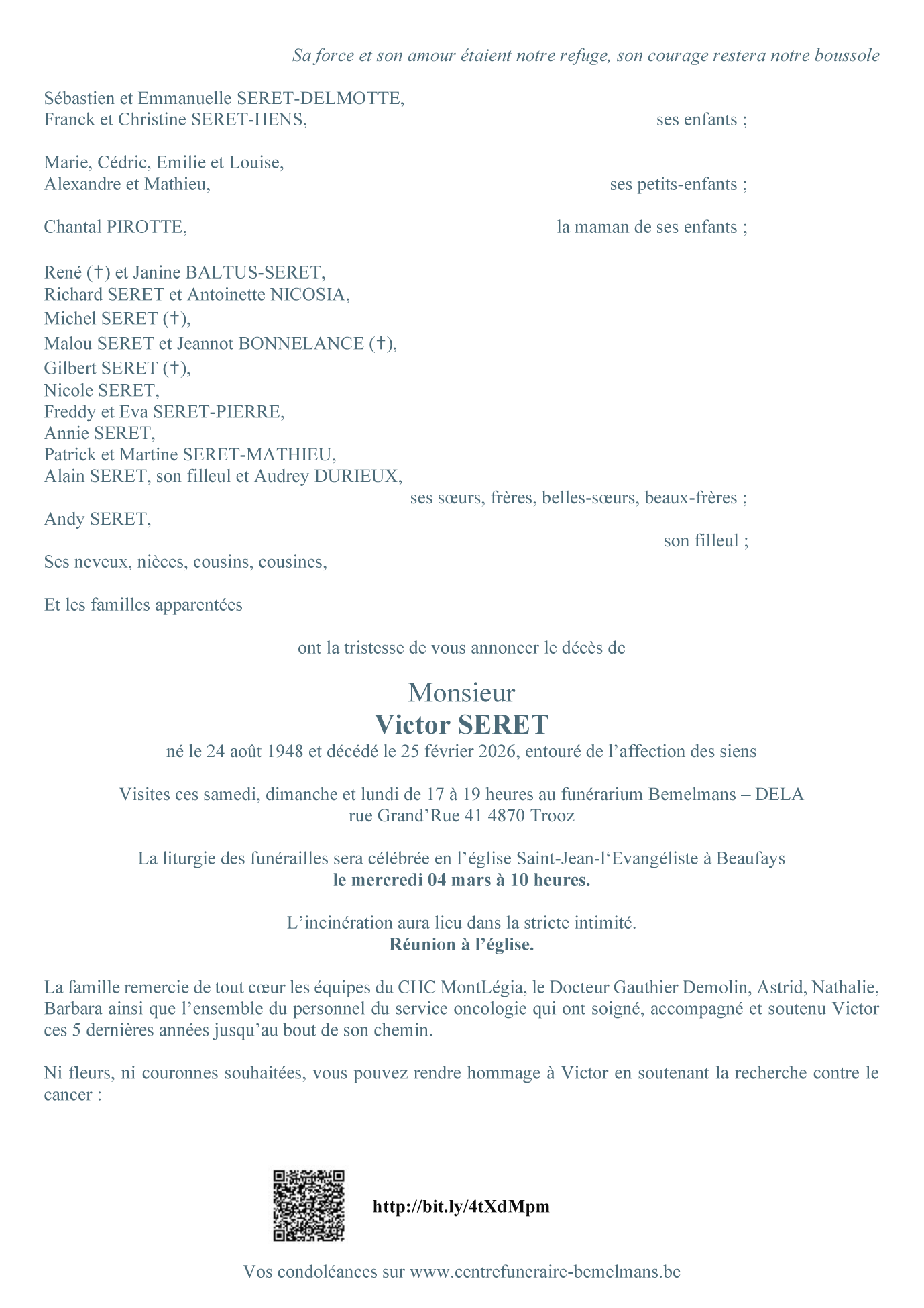 Décédé à Liège (4000, Belgique) le mercredi 25 février 2026 à l'âge de 77 ans