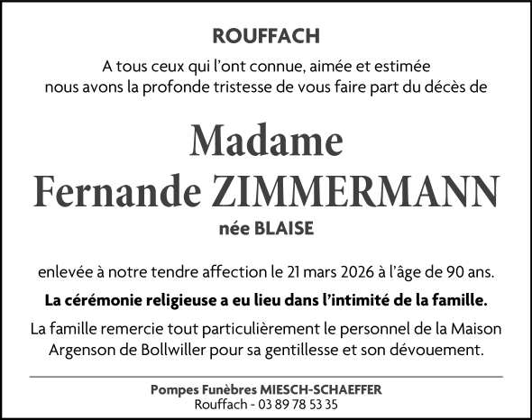 Veuve de Monsieur Fernand Joseph ZIMMERMANN