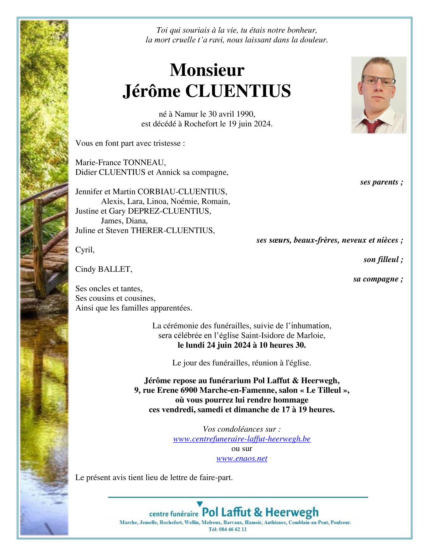 Décédé à Rochefort (5580, Belgique) le mercredi 19 juin 2024 à l'âge de 34 ans