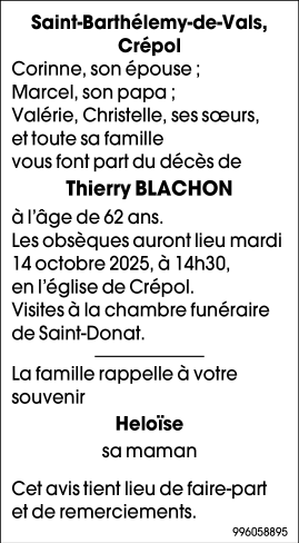 Décédé à Saint-Barthélemy-de-Vals (26240, France) le mercredi 8 octobre 2025 à l'âge de 62 ans
