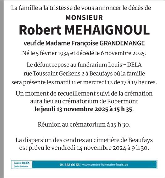 Décédé à Embourg (4053, Belgique) le jeudi 6 novembre 2025 à l'âge de 91 ans