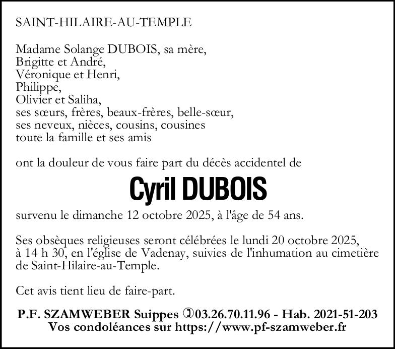 Décédé à Saint-Hilaire-au-Temple (51400, France) le dimanche 12 octobre 2025 à l'âge de 54 ans