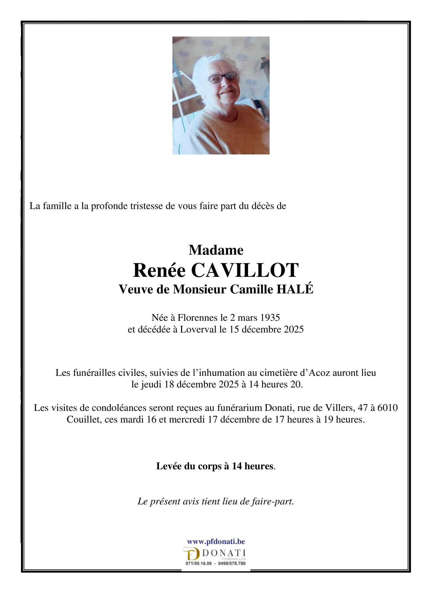 Décédée à Loverval (6280, Belgique) le lundi 15 décembre 2025 à l'âge de 90 ans