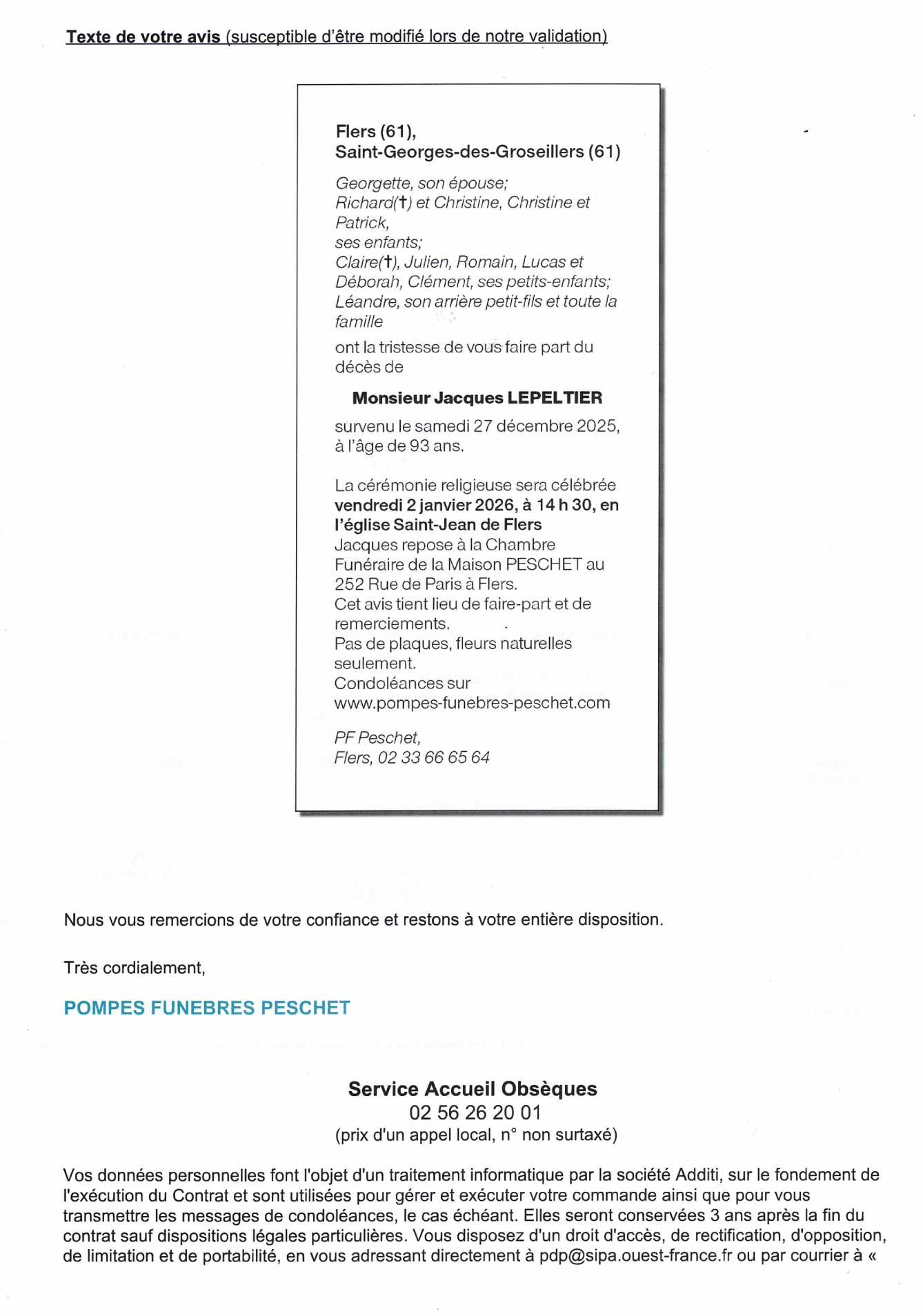 Annonce nécrologique