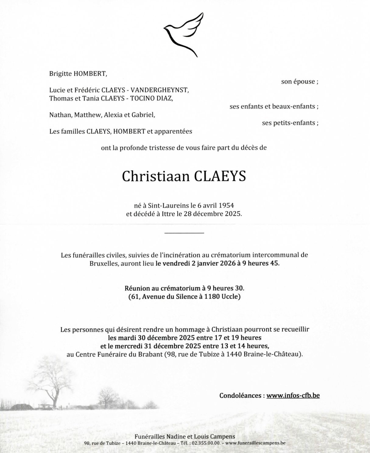 Décédé à Ittre (1460, Belgique) le dimanche 28 décembre 2025 à l'âge de 71 ans