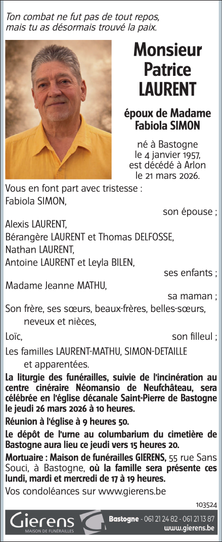 Décédé à Arlon (6700, Belgique) le samedi 21 mars 2026 à l'âge de 69 ans