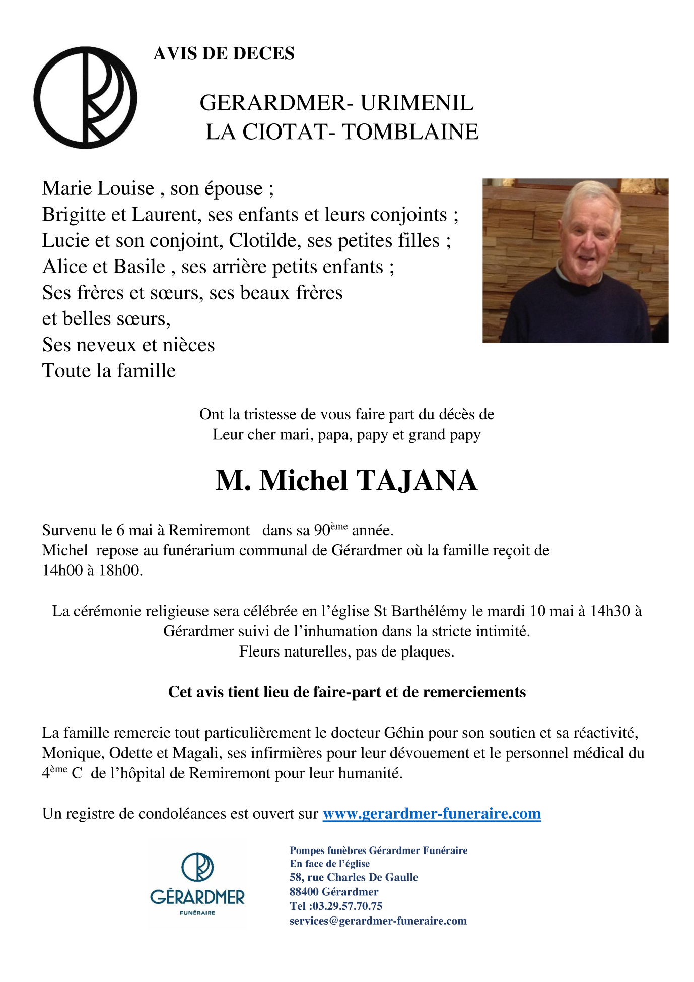 Overleden te Remiremont (88200, Frankrijk) op vrijdag 6 mei 2022 op 89-jarige leeftijd