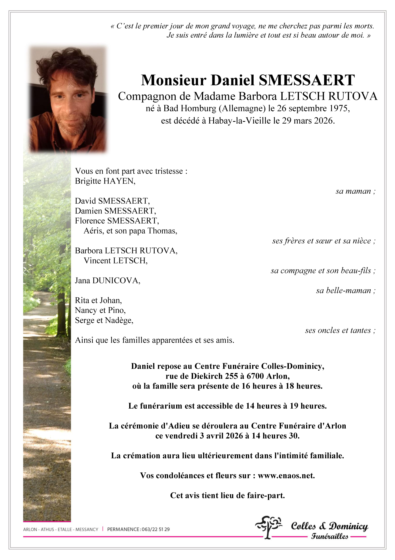 Died in Habay-la-Vieille (6723, Belgium) on 29 March 2026 at the age of 50 years