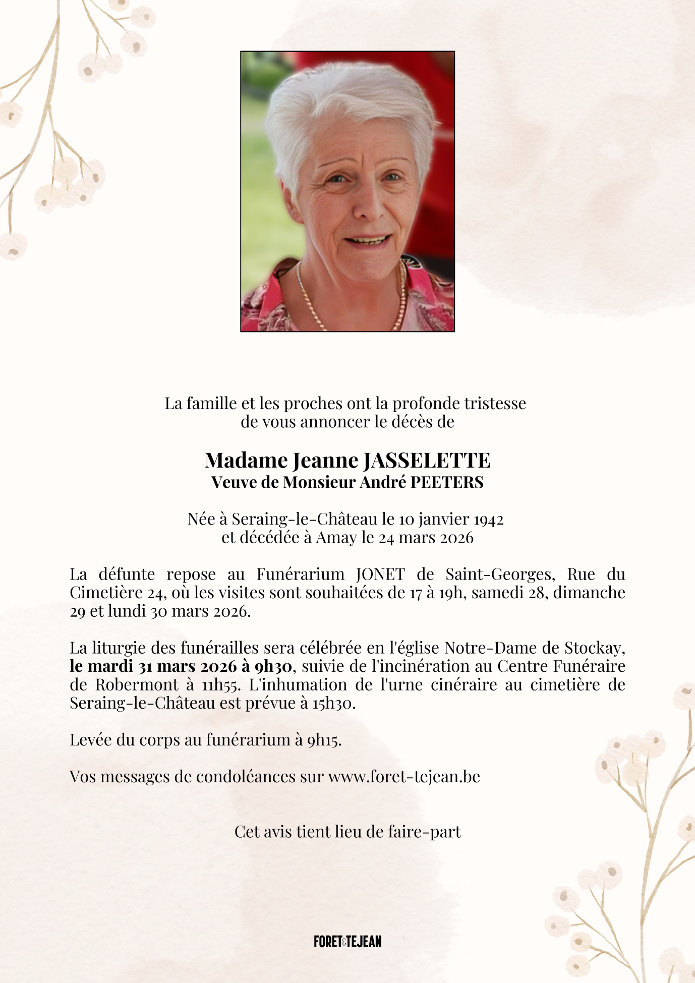 Overleden te Amay (4540, België) op dinsdag 24 maart 2026 op 84-jarige leeftijd