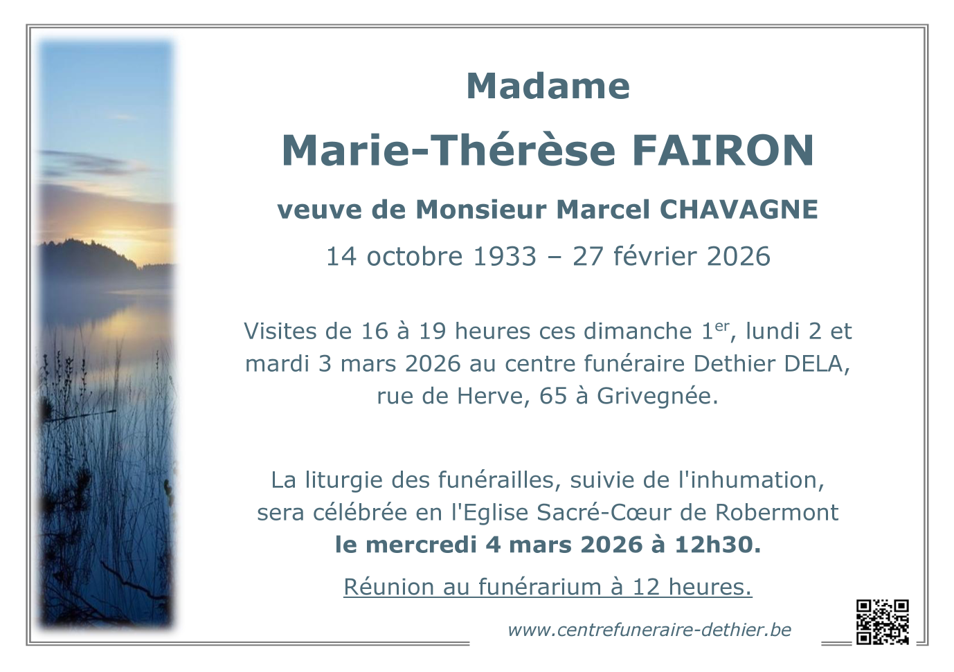 Overleden te Chênée (4032, België) op vrijdag 27 februari 2026 op 92-jarige leeftijd
