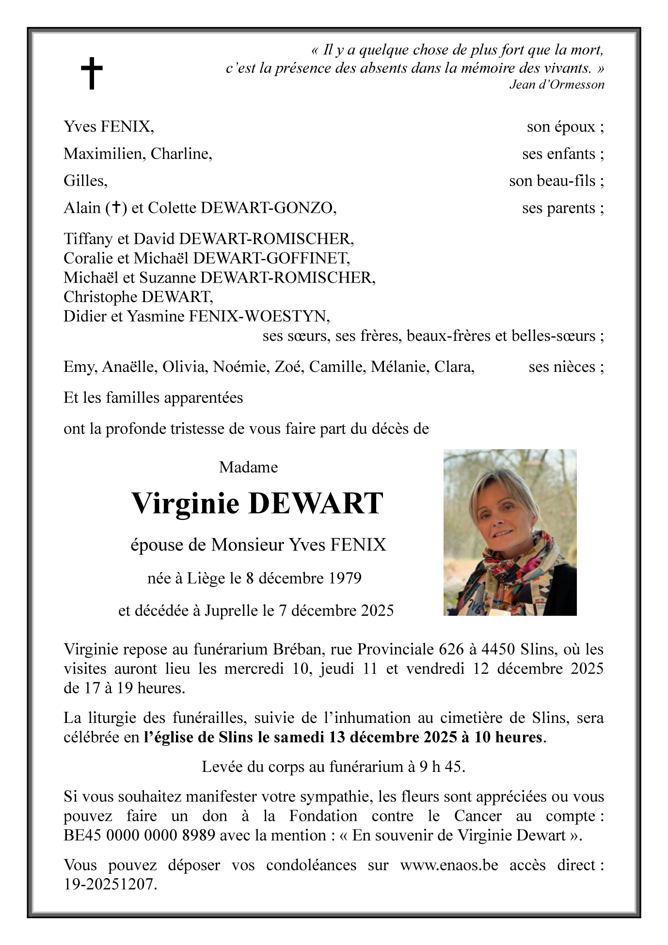 Décédée à Juprelle (4450, Belgique) le dimanche 7 décembre 2025 à l'âge de 45 ans