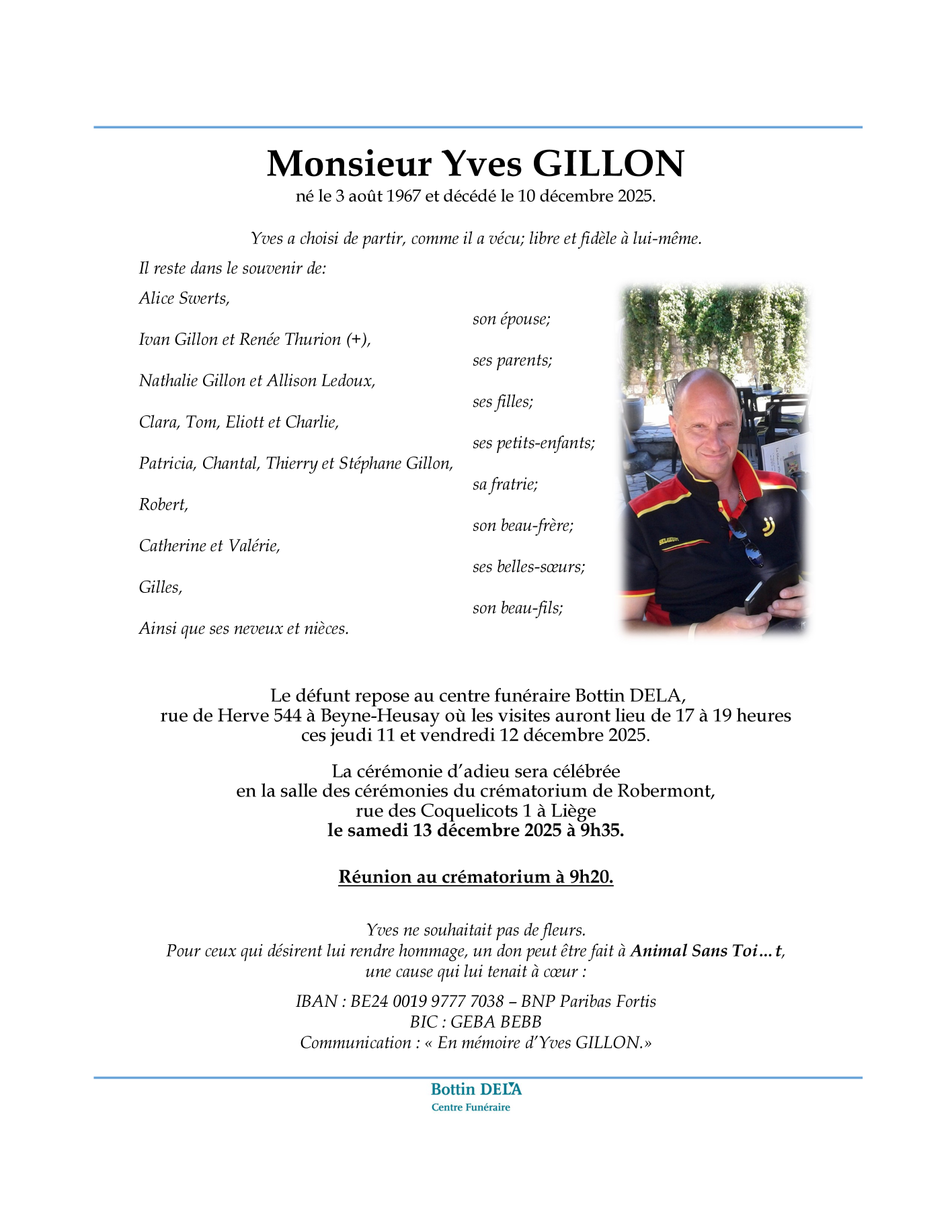 Fallecido en Chênée (4032, Bélgica) el miércoles, 10 de diciembre de 2025 a la edad de 58 años