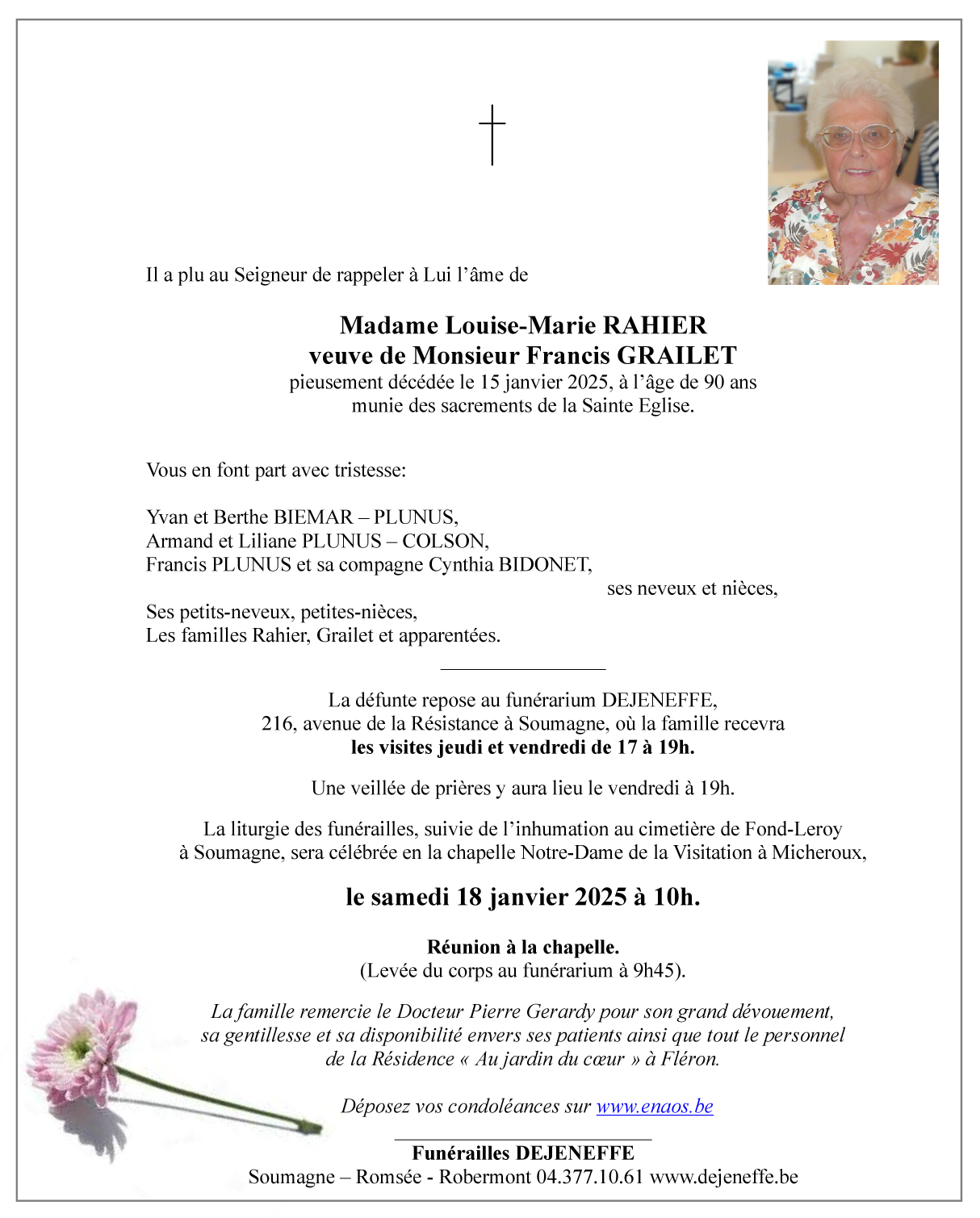 Died in Fléron (4620, Belgium) on 15 January 2025 at the age of 90 years